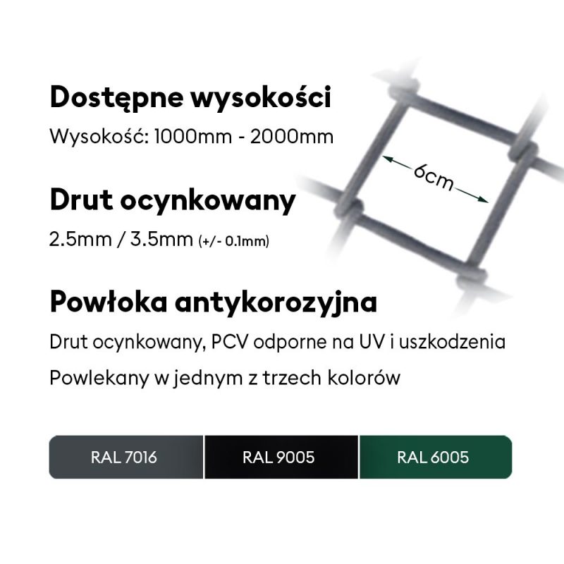 Siatka ogrodzeniowa to sprawdzony sposób na szybkie i niedrogie ogrodzenie każdej posesji. Wykonana z wysokiej jakości drutu stalowego o grubości 2,5–3 mm, gwarantuje trwałość oraz odporność na warunki atmosferyczne i uszkodzenia mechaniczne. Dostępna w wersji ocynkowanej lub malowanej proszkowo w kolorze zielonym, zapewnia estetyczny wygląd i długą żywotność bez potrzeby częstej konserwacji. To uniwersalne rozwiązanie idealne zarówno do ogrodzenia działek rekreacyjnych, jak i terenów prywatnych czy przemysłowych. Wybierz siatkę ogrodzeniową – lekką, funkcjonalną i łatwą w montażu alternatywę w atrakcyjnej cenie.